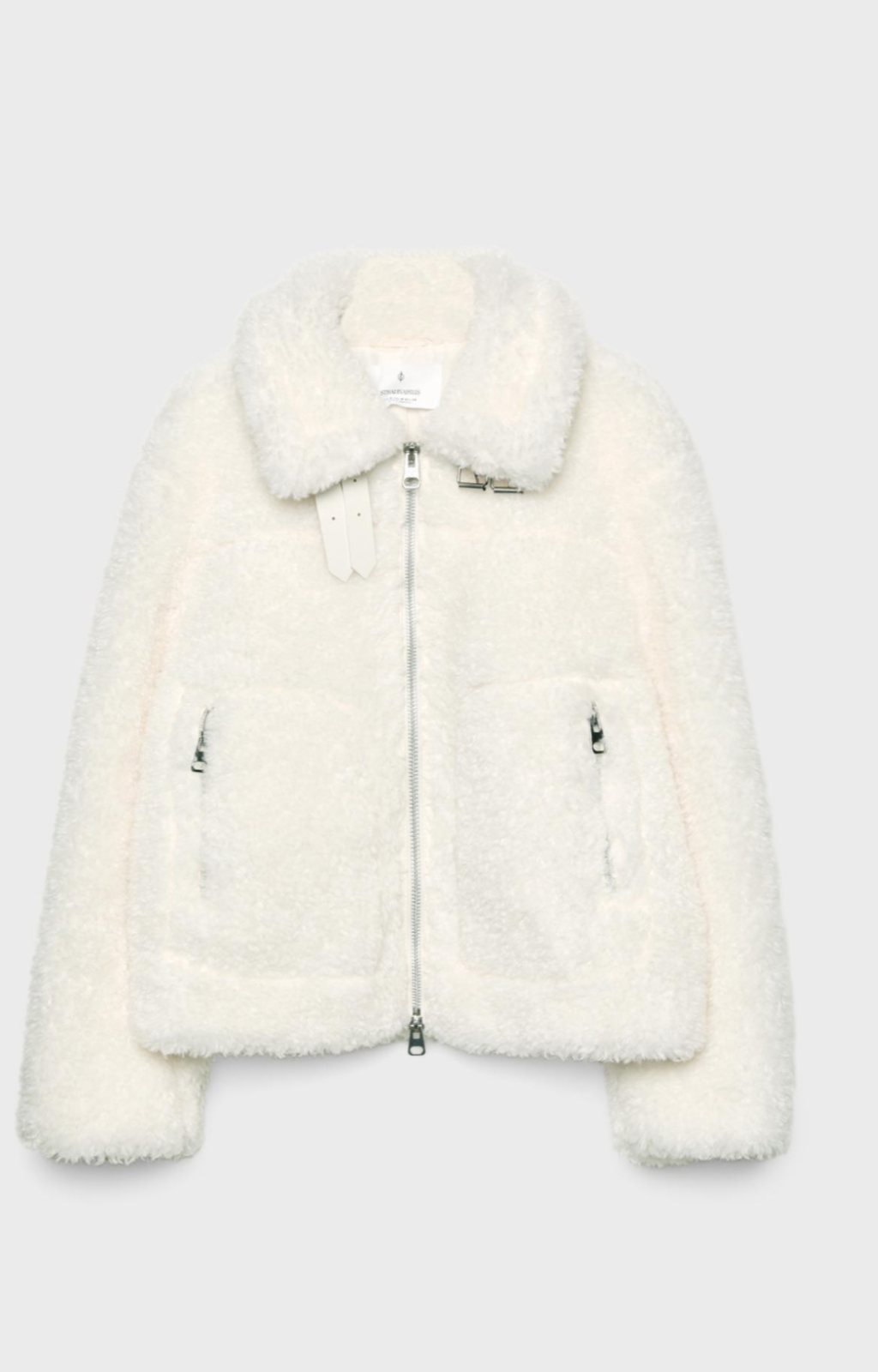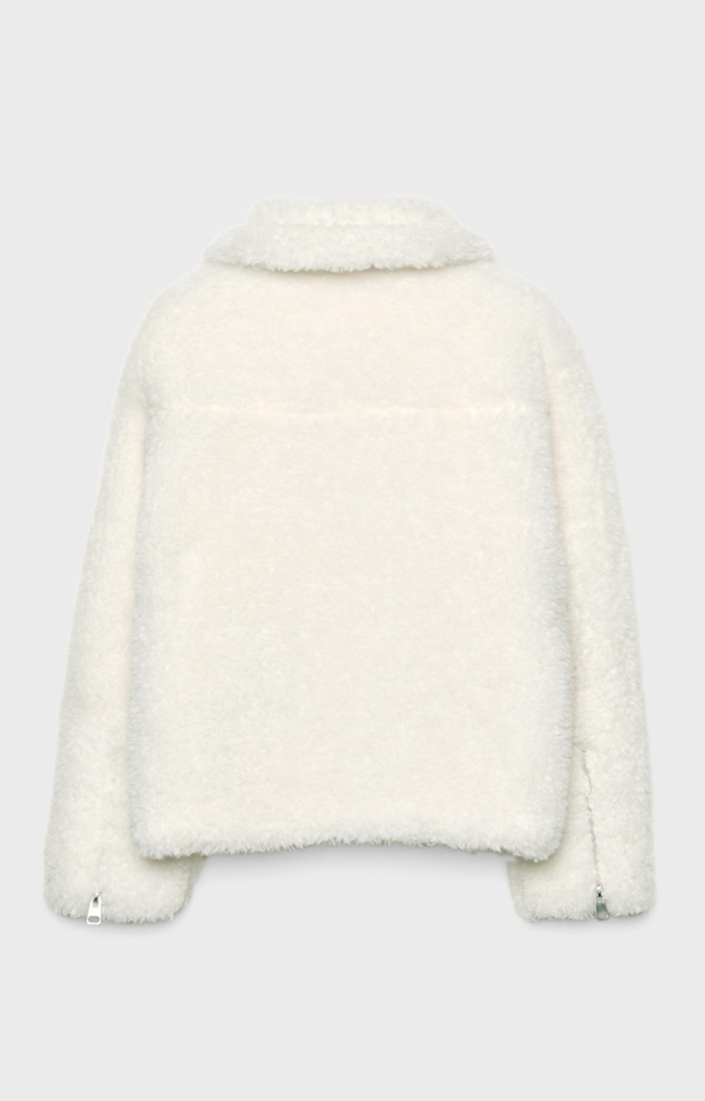 Cazadora estilo aviador de efecto borreguillo blanco.