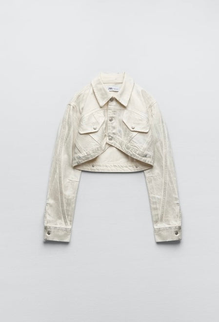 Cazadora crop de mezclilla blanca metalizada