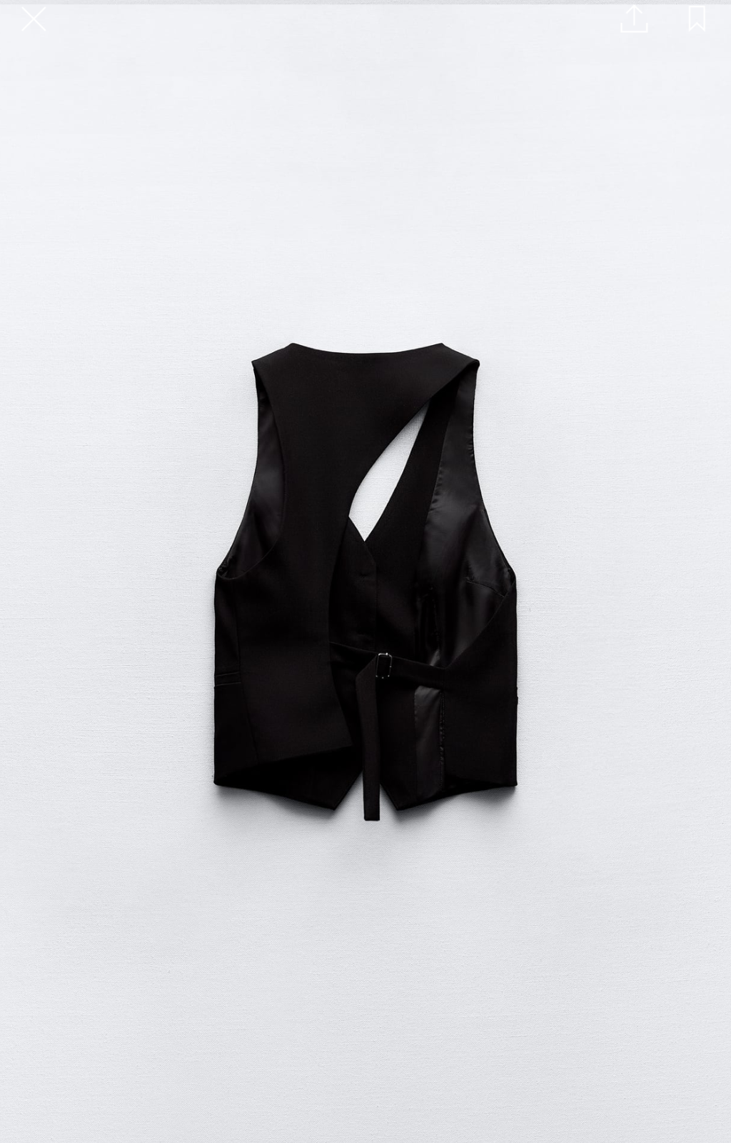 Chaleco tipo sastre asimétrico con botones y escote en espalda.